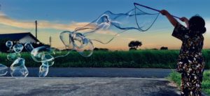 ご近所さんの家に50cm前後のしゃぼん玉を